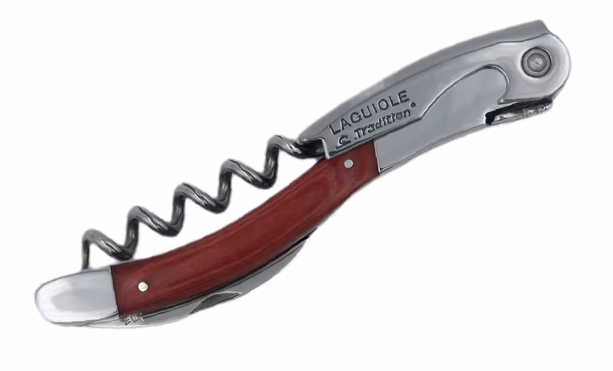 The Laguiole Tradition corkscrew is a contemporary tool, blending the excellence of Laguiole with the reliability of a professional sommelier corkscrew, complete with an ergonomic handle.